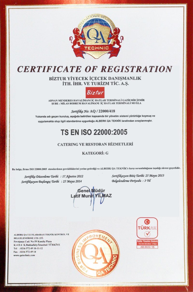 Biztur Yiyecek İçecek A.Ş. İzmir Adnan Menderes Havalimanı İç Hatlar Terminali ve Milas-Bodrum Havalimanı İç Hatlar Terminalinde toplam 6 yiyecek-içecek ünitesi ile yıllık 4.000.000 havalimanı yolcusuna hizmet vermektedir. Biztur Yiyecek İçecek A.Ş. , Gategourmet USAŞın İzmir Adnan Menderes Havalimanı veMilas Bodrum Havalimanındaki faaliyetlerine son verme kararı aldıktan sonra...